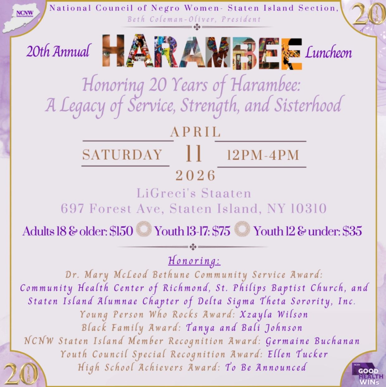 A Legacy of Service, Strength, and Sisterhood 20th Annual Harambee Luncheon a cornerstone event of the National Council of Negro Women, Staten Island Section.